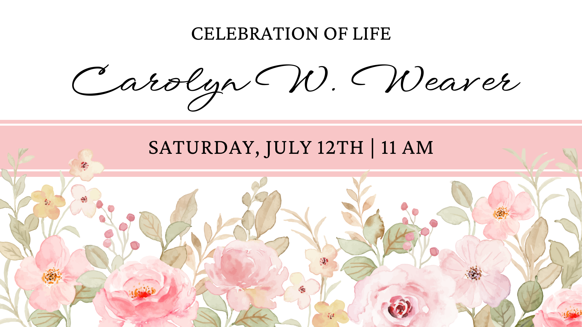 A Celebration of Life Service will be held for our dear sister Carolyn on Saturday, July 12 at 11 AM. Visitation at 10 AM. No meal following the service.
